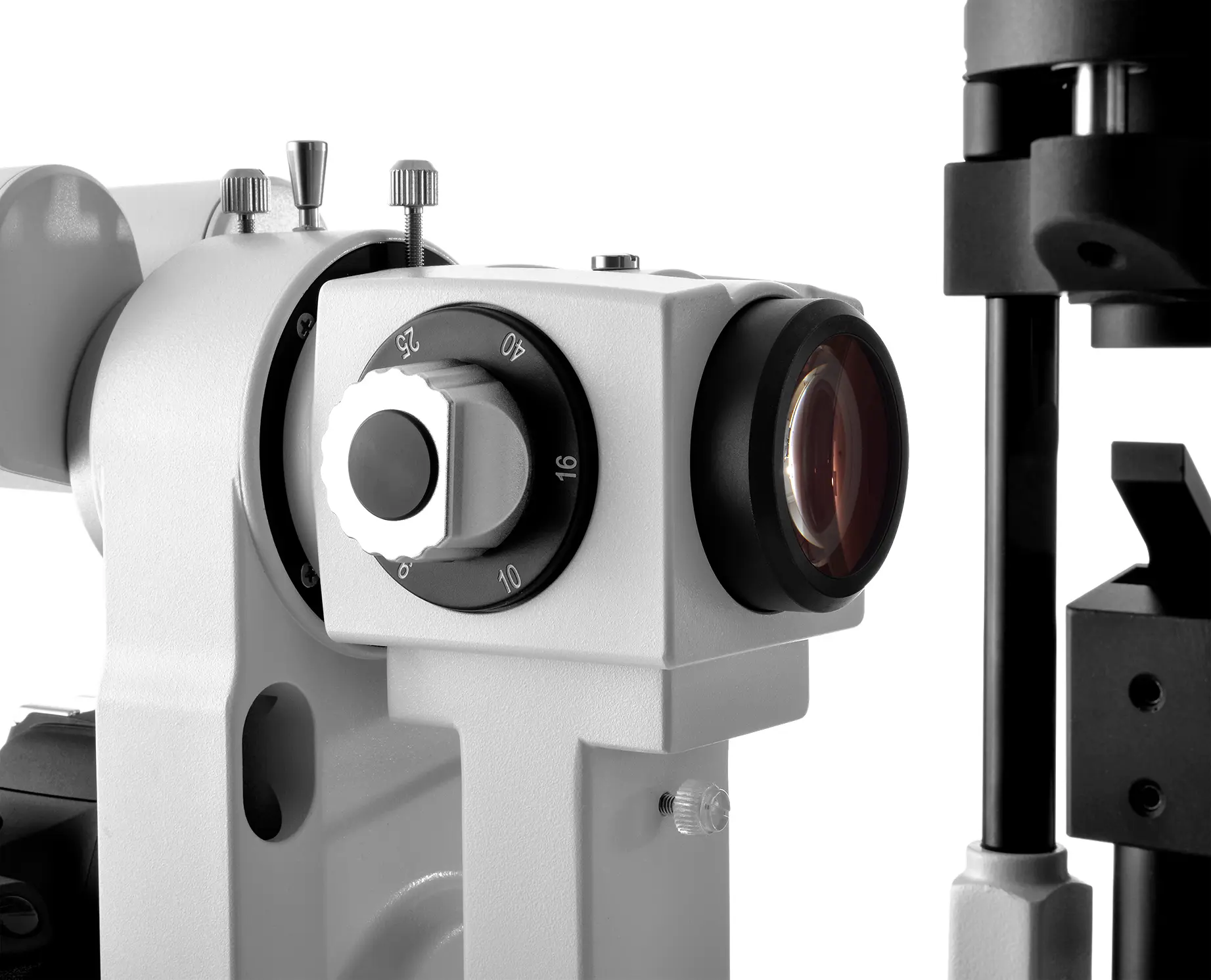 Five-step drum magnification for eyepiece. Sclera vein could be observed under the 40x magnification