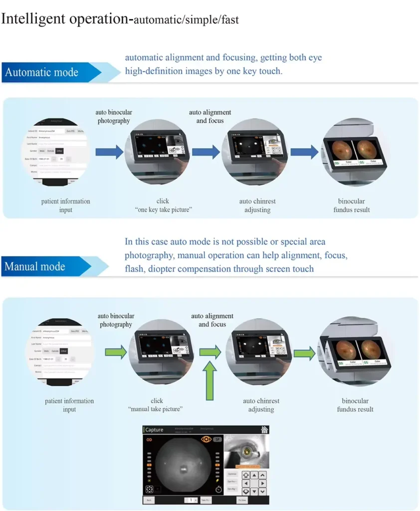 2.Automatic and manual focus: The camera features both automatic and manual focus options, allowing ophthalmologists and optometrists to tailor the focusing according to the patient’s needs and clinical requirements.